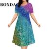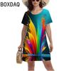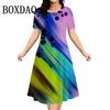 Gradient Elegantní dámské šaty Letní móda Společenské šaty s krátkým rukávem A-Line Ženy Neformální květinový potisk Volné oblečení Nadměrná velikost