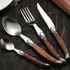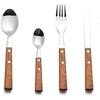 Nůž Vidlička Lžíce Stolní nádobí 4dílná sada Nerezová ocel 304 Retro kulatá rukojeť Dřevěná steaková Shabili YSH-53-4PS