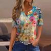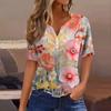 Dámské tričko s potiskem, knoflíky, krátký rukáv, denní, víkendová móda, základní V-výstřih, běžný top