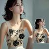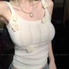 Women's Square Neck Wide Straps Floral Short Vest Sleeveless Flower Decorated Top