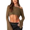 Women's Crochet Knit Crop Top Y2k Long Sleeve Cropped Sweater Shrug Off Shoulder Hollow Out Knitted Tops