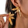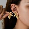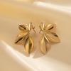 Fashion Stainless Steel Leaves Flower Stud Earrings Bright Anti Allergy Waterproof Charm Texture High Quality Jewelry