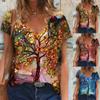 5XL Tree Print Big Size 2021 Women Loose T-Shirts V-Neck Short Sleeve Summer Casual Tee Tops Lady Oversized Streetwear T-Shirt