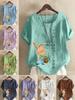 Dámská móda Králík Tričko s kulatým výstřihem Krátký rukáv Ležérní Bavlna Len Grafická Košile Volný Volný Letní Halenka Topy