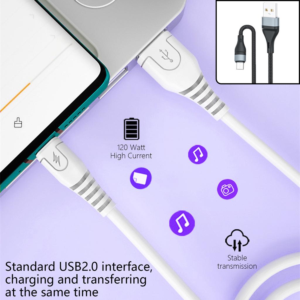 120W Charging Cable USB2.0 Fast Charging Cord Wire for Tablets Phones USB 5Pin/ Type C Quick Charging Data Cable