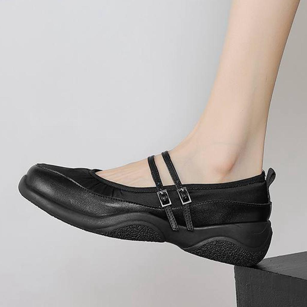Krazing Pot Dámské tenisky s kulatou špičkou a středním podpatkem z hovězí kůže, s přezkami a pásky