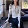 Sexy trička Ženy Slim Y2k Trendy Topy Podzimní Plodiny Populární Korejský styl Knoflíček Dlouhý rukáv Roztomilé košile Volný čas Dívčí