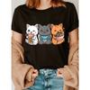 Módní dámské tričko s potiskem tří roztomilých koček, vtipné ležérní tričko s kulatým výstřihem a krátkým rukávem, letní dámské tričko