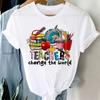 Módní Dámské Roztomilé Psací Potřeby Astronaut Písmena Potisk Tričko Vtipné Ležérní Kulatý Výstřih Krátký Rukáv Tričko Letní Dámské Tričko