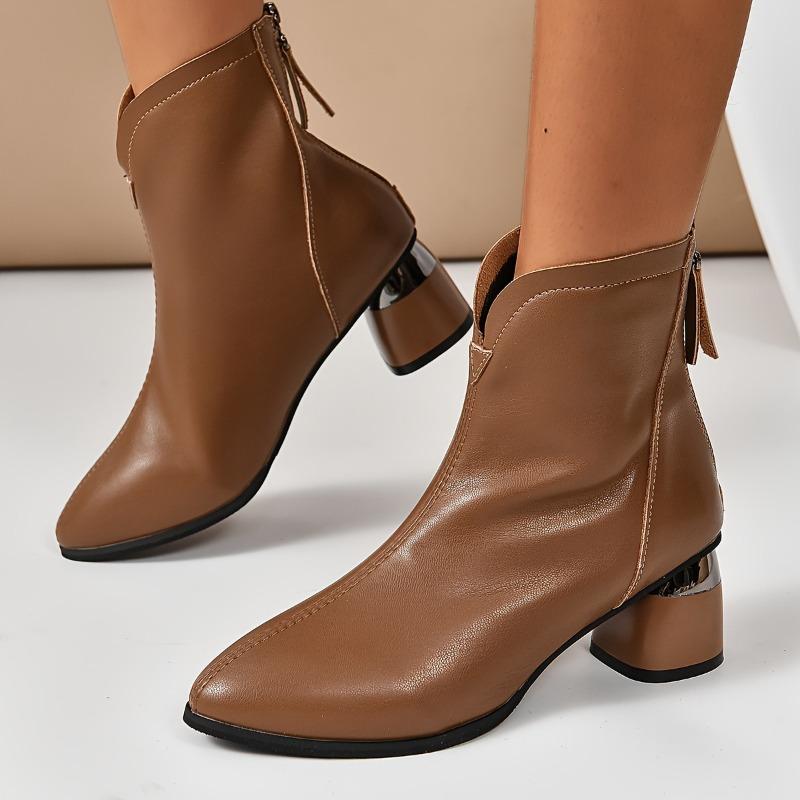 New Style Fashionable All-match Thick Heel Non-tiring Pointed Toe Leather Boots In Autumn and Winter
