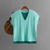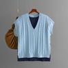 Dámský podzimní zimní ležérní svetr s výstřihem do V bez rukávů s kosočtvercovým pleteným vzorem