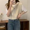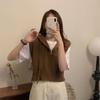 Vesta s kapucí bez rukávů raný podzim dámský svetr nový volná šňůrka krátký zip design pletený top