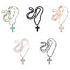 Ručně vyrobený náhrdelník Růženec s perlovými korálky pro ženy Muže Křížový přívěsek Kříž Řetízek na klíční kost Náboženské modlitební šperky Dárek