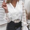 Dámská móda Ležérní krajkový potisk Vystřihované halenky s dlouhým rukávem Košile pro úřednice Elegantní