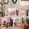 4pcs/Set Christmas Letter Pillow Cover Home Living Room Sofa Cushion Cover Christmas Tree Pillow Without Pillow Core