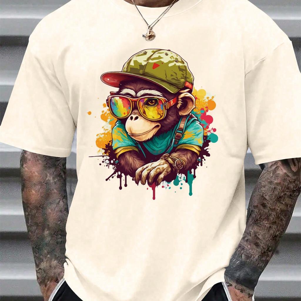 Pánské letní kreslené tričko s potiskem gorily, s kulatým výstřihem, ležérní, s krátkým rukávem