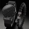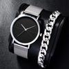 2ks/sada módních pánských obchodních hodinek se síťovaným řemínkem, quartzových hodinek, klasických kreativních kalendářních náramkových hodinek a náramku