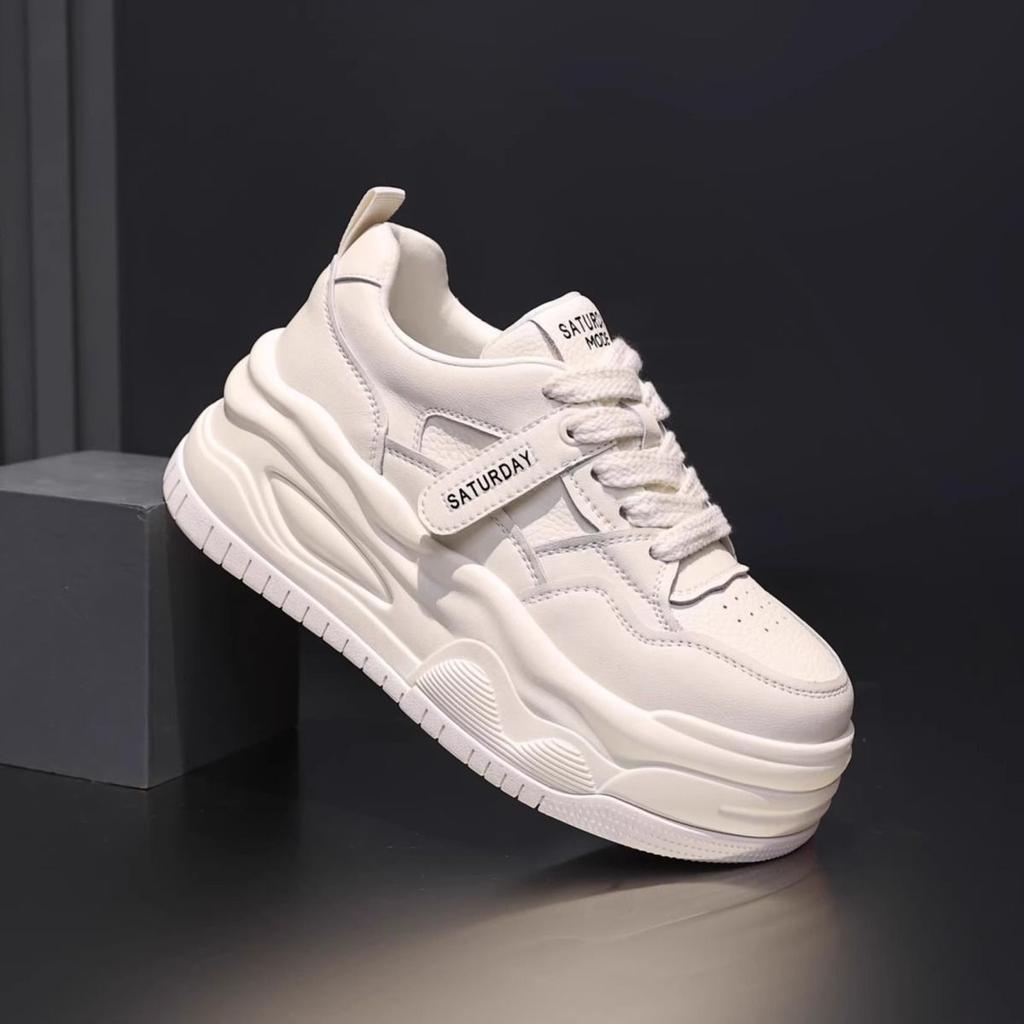 Kožené Bílé Boty Dámské Jarní Nové Dámské Pohodlné Platformové Jednoduché Tenisky Ležérní Všestranné Barevně Sladěné Dámské Boty