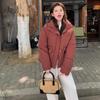 Dámský podzimní zimní krátký jednobarevný zateplený svrchní oděv s bavlněnou výplní, stojáčkem, teplá bunda na zip