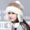 Pletená bomber čepice z králičího kožešiny Dámské Zimní Teplé Měkké Kloboukové Čepice Bambulka Silná vložka Dívčí čepice Nadýchané Vícebarevné Pruhované čepice