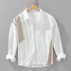 Spring and Summer Long Sleeve White Shirts for Men Street Style Striped Patchwork Shirts Male Casual Pure Cotton Top Youth Fashion Men Clothing