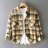 Podzimní a zimní pánské oblečení Retro styl Košile s dlouhým rukávem s kostkovaným vzorem Kartáčované volné košile s kapsou Denní pánská ležérní košile