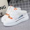 fashion Women Half Shoes Sneaker 2024 Summer Leather 8CM High Heels Slippers Casual Lace Up Woman Sneakers Shoes Fashion Summer Slippers
