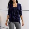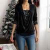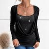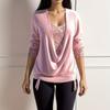 Spring and Autumn Beaded Clash Net Long Sleeve Women's Big Drop Neck Loose Drawstring False Two Piece Top