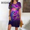 Letní plážové party šaty Dámské šaty s potiskem růžových květů v technice tie-dye Neformální krátký rukáv O-výstřih Pulovr Nadměrné dámské oblečení