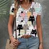 Dámské tričko se vzorem kočky s výstřihem do V, módní top, letní novinka, poloviční rukáv, volný střih, krátký rukáv, ležérní elegantní dámské tričko