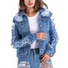 Dámská krátká džínová bunda Vyšívaná džínová bunda Velké velikosti Ležérní džínová bunda se stojáčkem