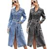 Dámské zimní kancelářské úzké džínové šaty se střední manžetou s páskem pro dámské džínové šaty