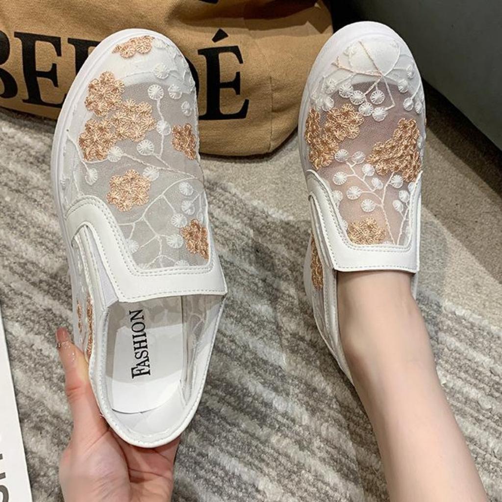 Jaro a léto Nové vnitřní Vyvýšené Malé Bílé Boty Duté Vyšívané Prodyšné Dámské Boty Síťované Boty Běžné Single Boty