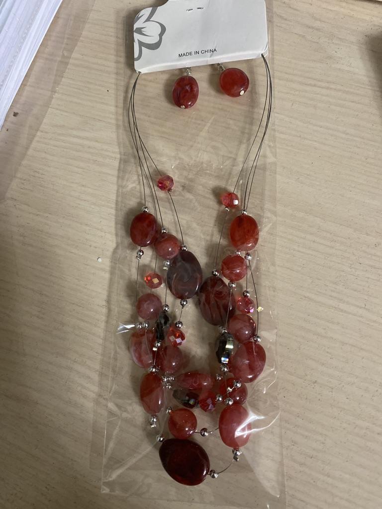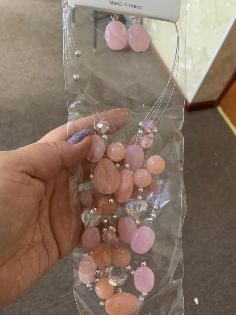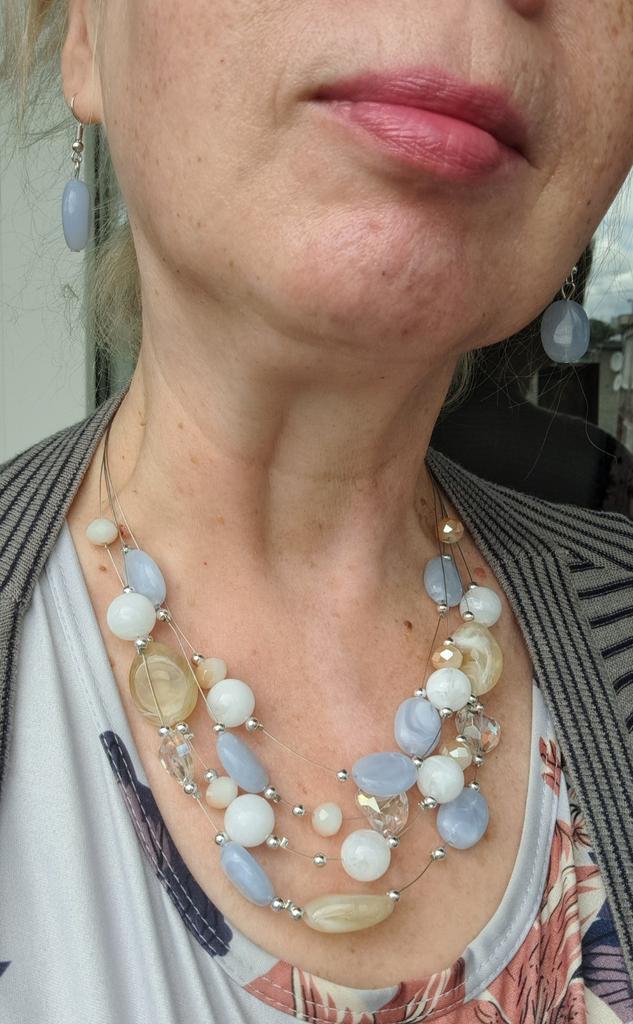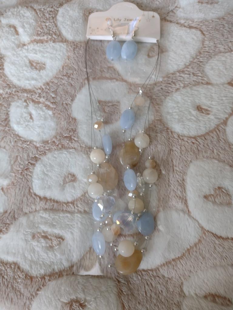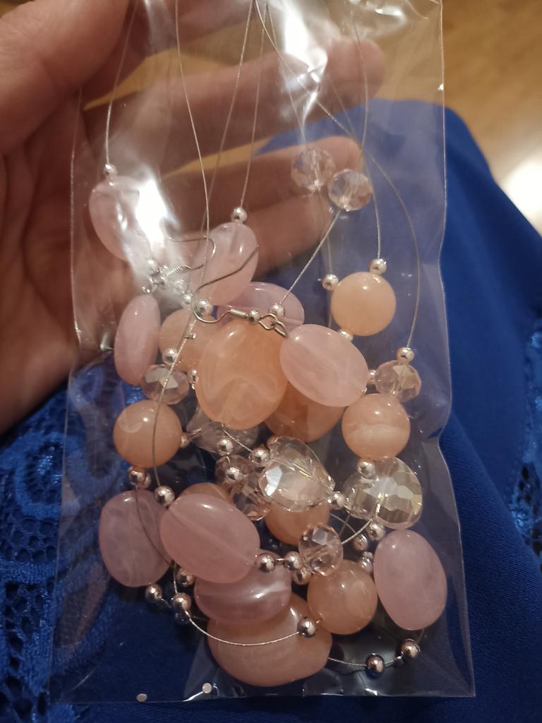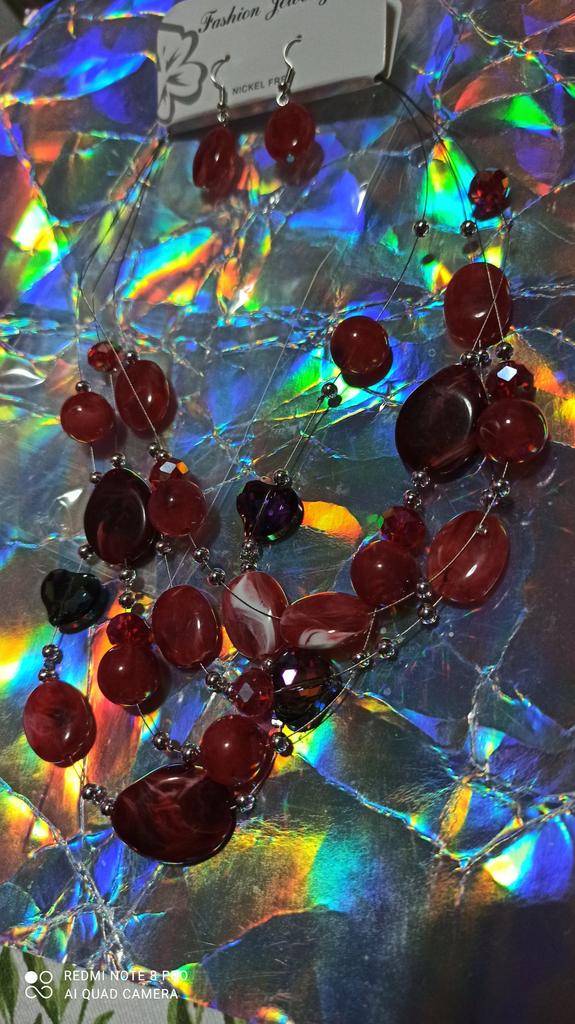 Je těžký, náhrdelník vypadá zajímavě, barvy jako na fotce. Náušnice jsou jednoduché, ale krásně doplňují celek.