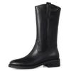 Nové zimní dámské kozačky Módní a všestranné Dámské kozačky s kulatou špičkou Jednobarevná kůže s rukávem na tlustém podpatku