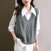 Pevná Vesta s copánkovým vzorem s výstřihem do V, Vintage bezrukávový volný svetr, Dámské oblečení