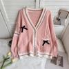 Y2k Estetické Vše Hodící Kontrastní Kabáty Sladké Mašle Pletené Kardigany Módní Jednořadé Dámské Kawaii JK Svetry Svetr