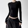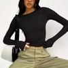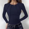 Elegantní Design: Pozvedněte svůj styl s elegantním designem tohoto topu s kulatým výstřihem, dlouhými rukávy a elegantním zdobením, které vyzařuje jednoduchost a sofistikovanost.