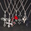 Vintage Červený Láska Srdce Kříž Tvar Přívěsek Náhrdelník s Hadím Řetízkem Pro Ženy Muže Halloween Estetický Gotický Rave Šperky Doplňky