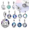 925 Sterling Silver Beads Sparkling Pav éDouble Circle Pendant Charm For Original Fashion Bracelet Women Jewelry Diy Gift