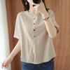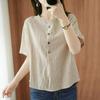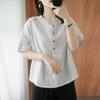 Dvouvrstvá košile s polovičním rukávem z bavlněné příze pro ženy s výstřihem do V Jarní podzimní top outfit Nová umělecká ležérní halenka