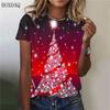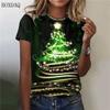 Vzor vánočního stromečku Ženy Módní Trička s krátkým rukávem Vánoční dny Street Trend Dámská trička Trička s 3D potiskem s výstřihem