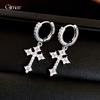 Módní stříbrná barva křížový přívěsek asymetrické náušnice pro ženy třpytivé náušnice kroužky s kubickým zirkonem velkoobchod S -E1093