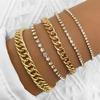 5pc /Set Vintage Simple Link Chain Full Rhinestone Bracelets For Women Girls Bohemian Leg Ankle Anklet Bracelet Beach Jewelry