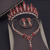 Luxusní červené křišťálové tiáry Sady svatebních šperků pro ženy Ples Svatební Náušnice Náhrdelník Set Svatební Korunka Sady šperků