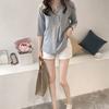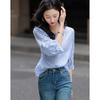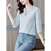 Pure Cotton Three-quarter Sleeve Striped Shirt Women's Spring and Autumn Ethnic Style Fashion V-neck Top