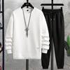 Pánský podzimní kulatý výstřih Nový vaflový oblek Ležérní Pohledný Sportovní Dlouhý rukáv Kalhoty Dvoudílná sada Trendy Značka