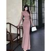 Dámské Večerní šaty Dlouhé Rukávy Úzká Jednobarevná Pochva Dutá Zadní Strana Délka Podlaha Pružný Polovysoký límec Prom Party Maxi šaty
