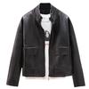 Černá kožená bunda dámská krátká podzimní a zimní nová volná slim motorkářská kožená bunda korejského stylu bunda zahraničního střihu