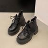 Podzimní černé martensky pro ženy silné podrážky s britským stylem kotníkové boty sladké cool malé kotníkové boty platformové boty krátké boty